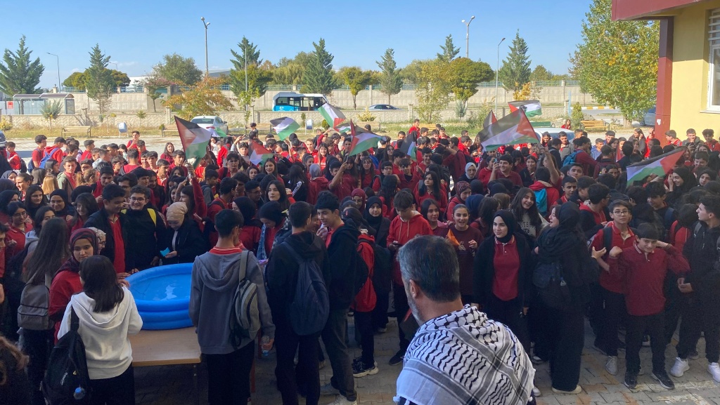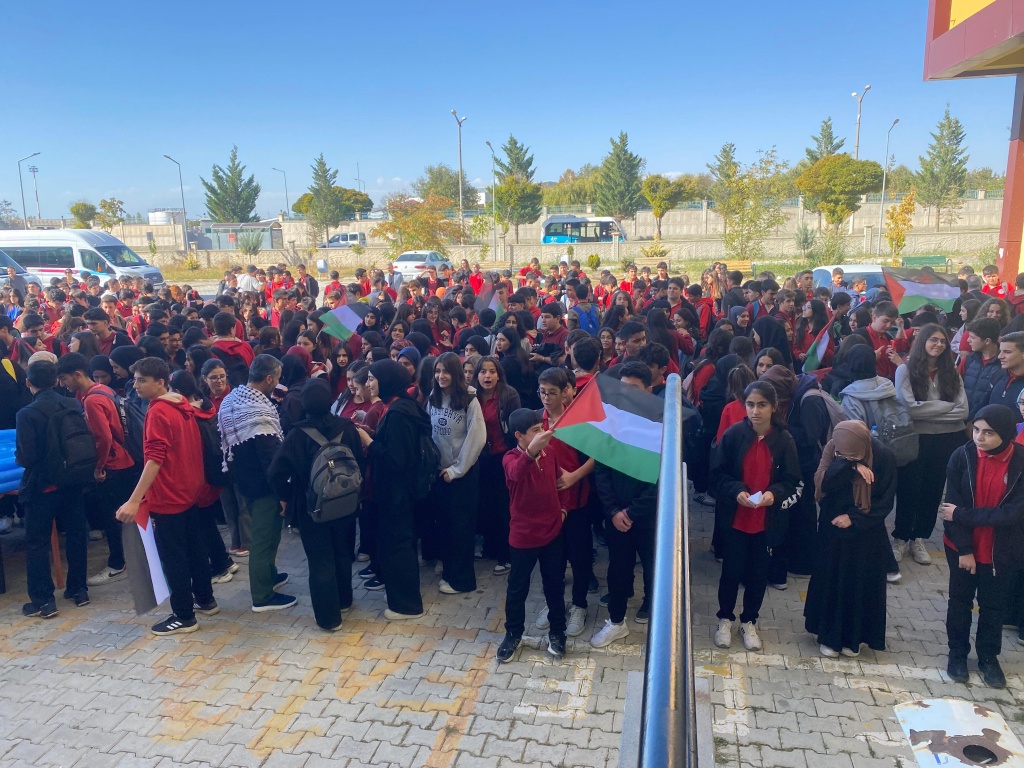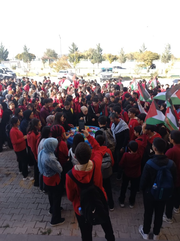 Ülkemizde tüm okullarda gerçekleştirilen Filistin Farkındalık Etkinliği kapsamında okulumuzda da etkinlik yapıldı. Yapılan etkinliğe okulumuz öğretmen ,öğrenci ve personelleri büyük ilgi gösterdiler. Bugün Gazzede çocuklar ölürken bizler insanlık olarak susamayız. Filistin meselesi sadece Filistinlerin değil tüm insanlığın meselesidir. İnsanın vicdan sınavı olan Filistin için bugün öğrencilerimizle onların haklılığını haykırdık.